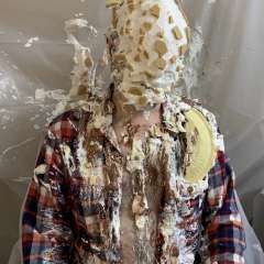 Michiganpie1 was surprised by SeymourTheClown with a big sloppy cream pie to the face